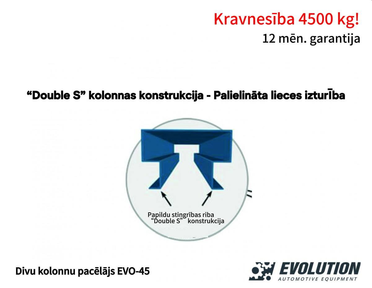 EVOLUTION EVO-45DEH - High quality lift suitable for every workshop with "Double S" column construction + 3-stage extended (up to 1511mm) lifting supports at the front and rear! WITH AUTOMATIC HEIGHT FIXERS