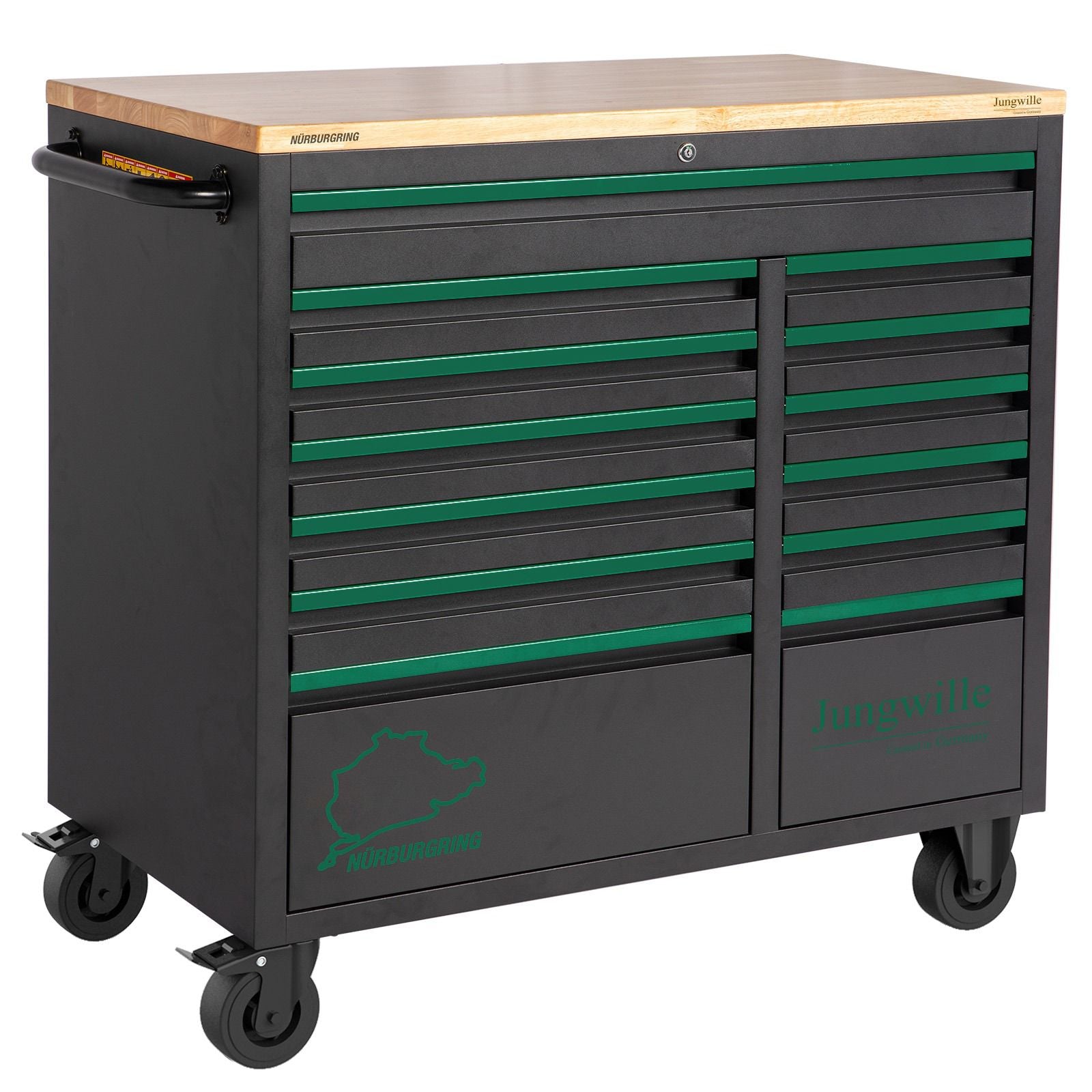 The Jungwille Tool Trolley Nurburgring is a robust and high-quality tool trolley designed specifically for professionals and demanding DIY enthusiasts. With its durable construction, ample storage space, and fully equipped drawers, this tool trolley is the ideal choice for anyone who wants to keep their workspace organized and efficient.