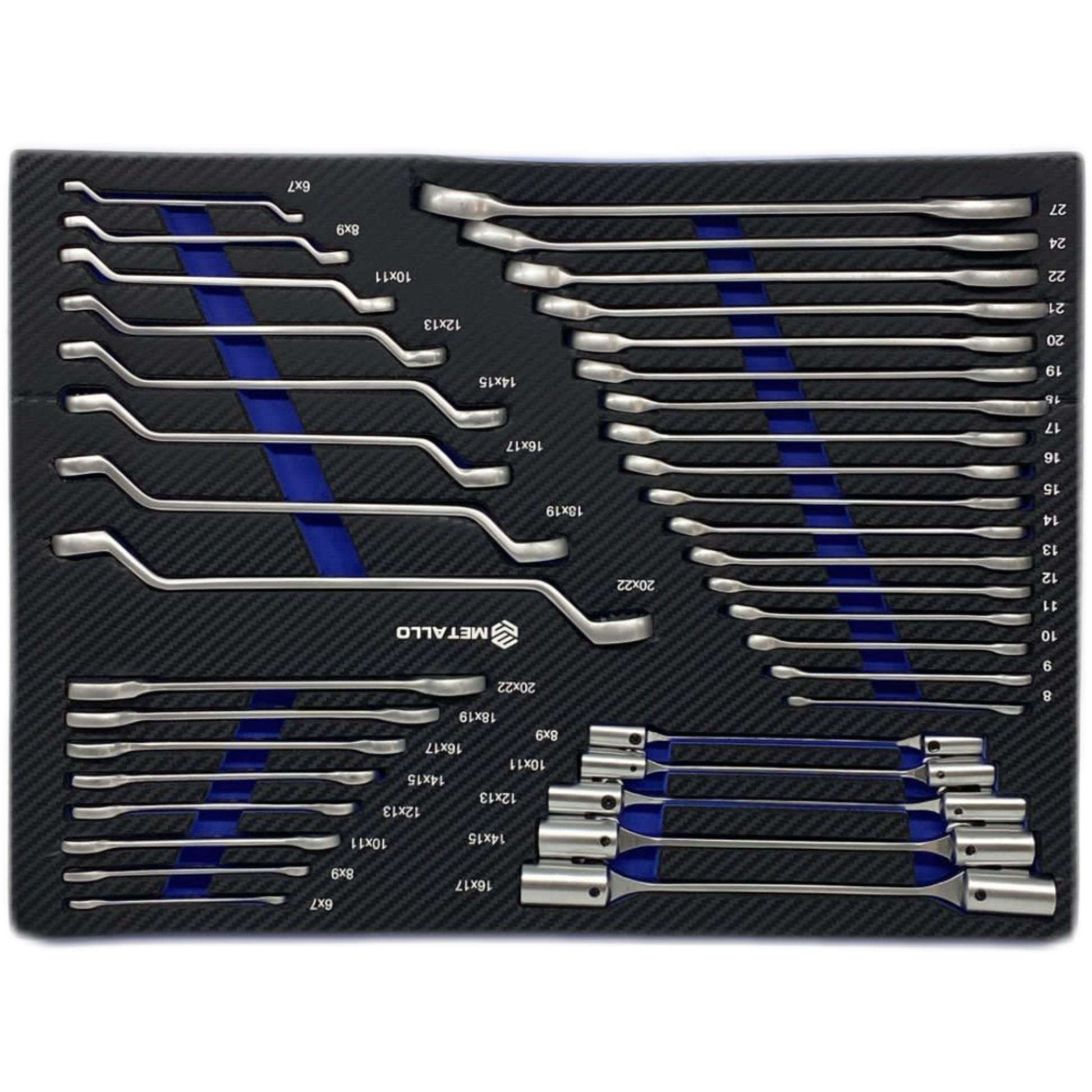 The professional METALLO XXL tool set is an essential solution for auto repair shops, workshops, and garages. All tools are neatly organized in a durable mobile trolley with 7 drawers and a side cabinet, and the set also includes a convenient mini-fridge for drinks and snacks during work.